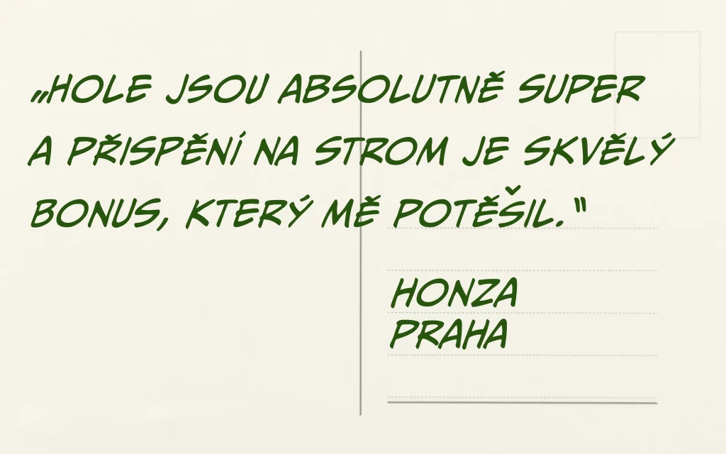 ✅ Za jedny hole vysazen jeden strom (automaticky získáváš certifikát)